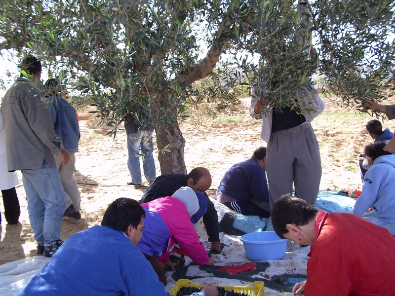 Simon (debout à droite) ramasse les olives chaque année avec les handicapés de l’Association Printemps (Errabii)